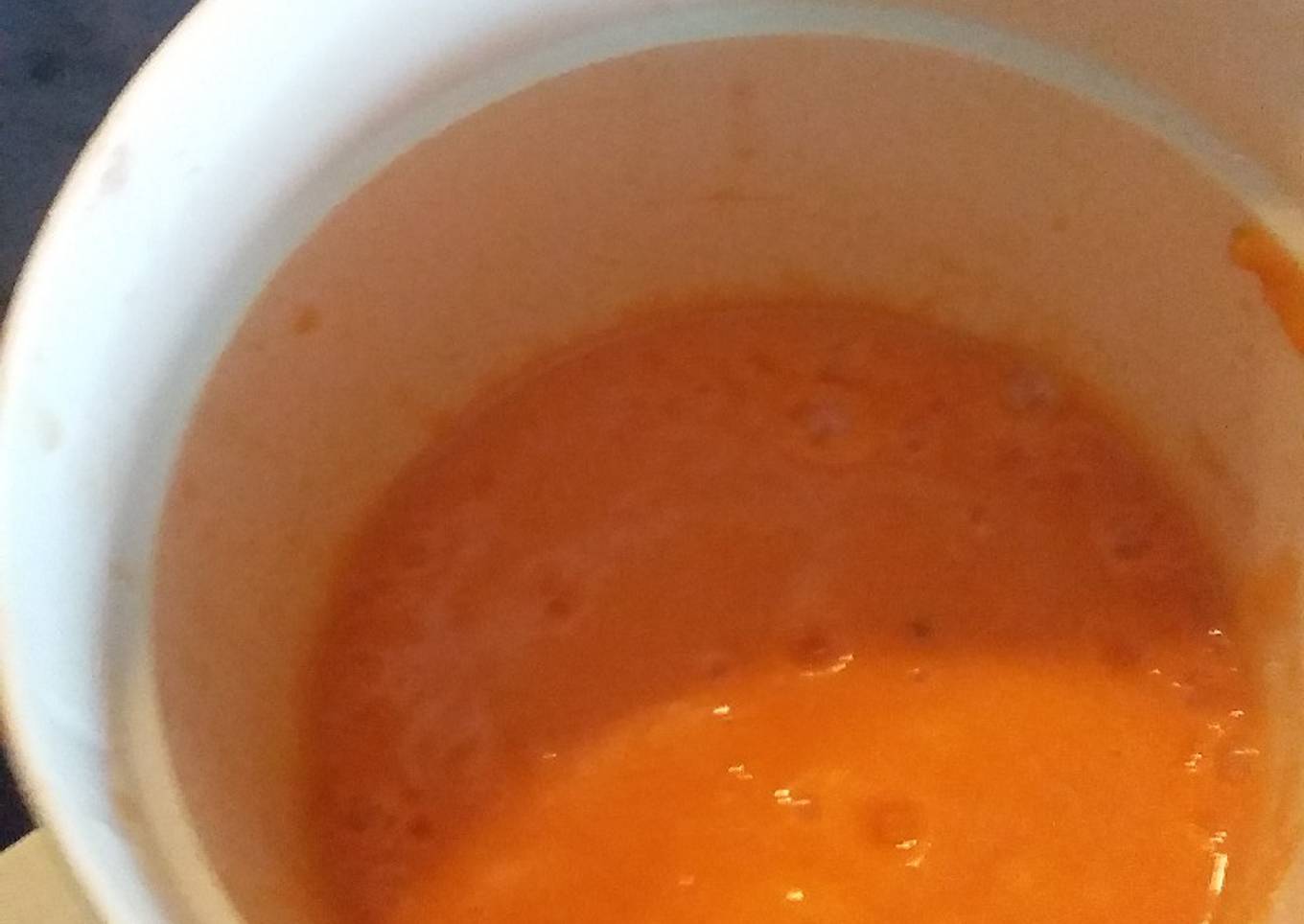 - Lo primero metemos los tomates en agua caliente para pelarlos. Los echamos en una jarra todo junto lo batimos con la batidora y lo bebemos o lo comemos fresquito.