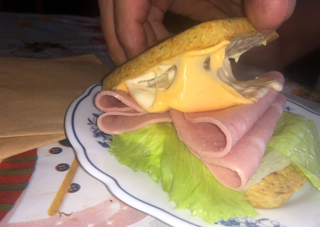 - Está chic@s, ponerle los ingredientes que queráis a sus bocadillos/ sándwiches. (Yo le puse jamón, lechuga, pepinillos, mayonesa, queso cheddar). Es una manera sanísima y deliciosa de hacerlo.