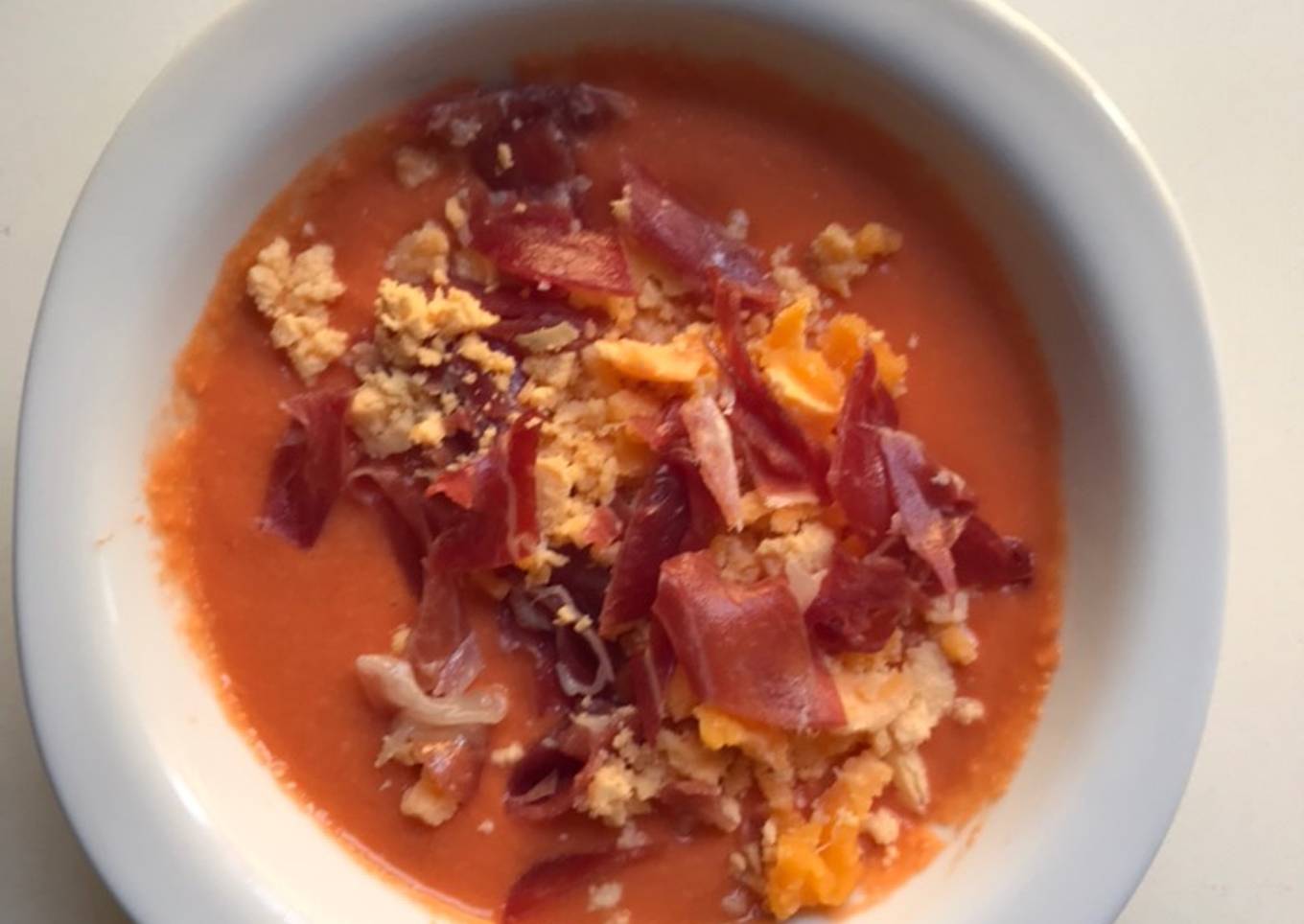 Hello everybody, it's John, welcome to our recipe page. Today, I will show you a way to make a distinctive dish, Salmorejo cordobés. It is one of my favorites. This time, I am going to make it a bit unique. This will be really delicious.