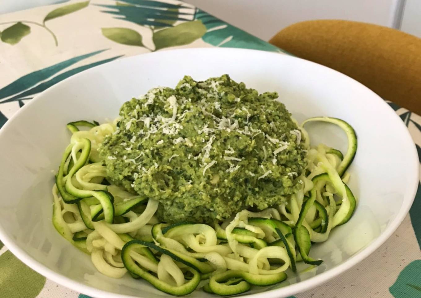 Espaguetis de calabacín con pesto de brócoli