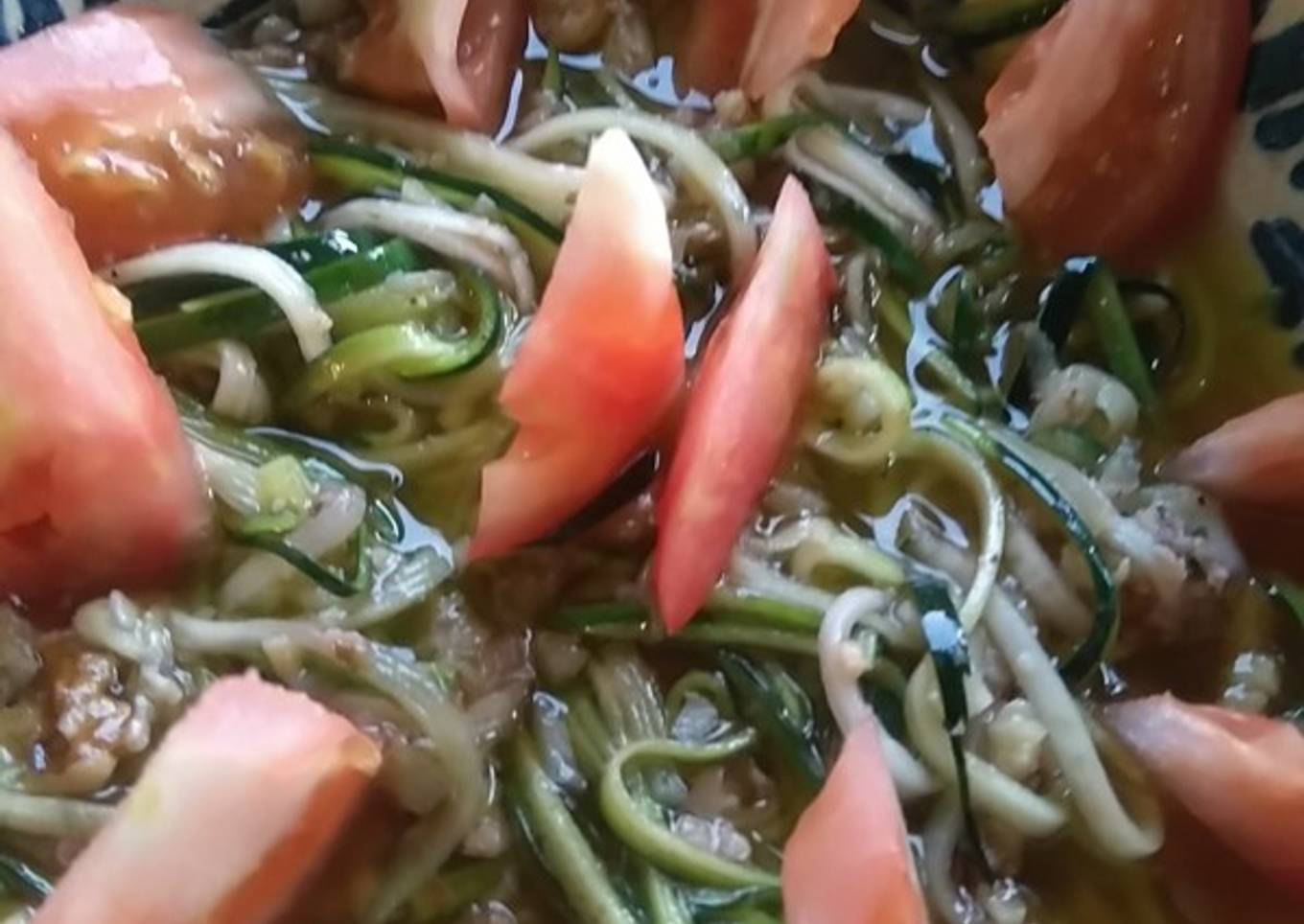 Instructions to make to make Espaguetis de Calabacín con vinagreta de Nueces