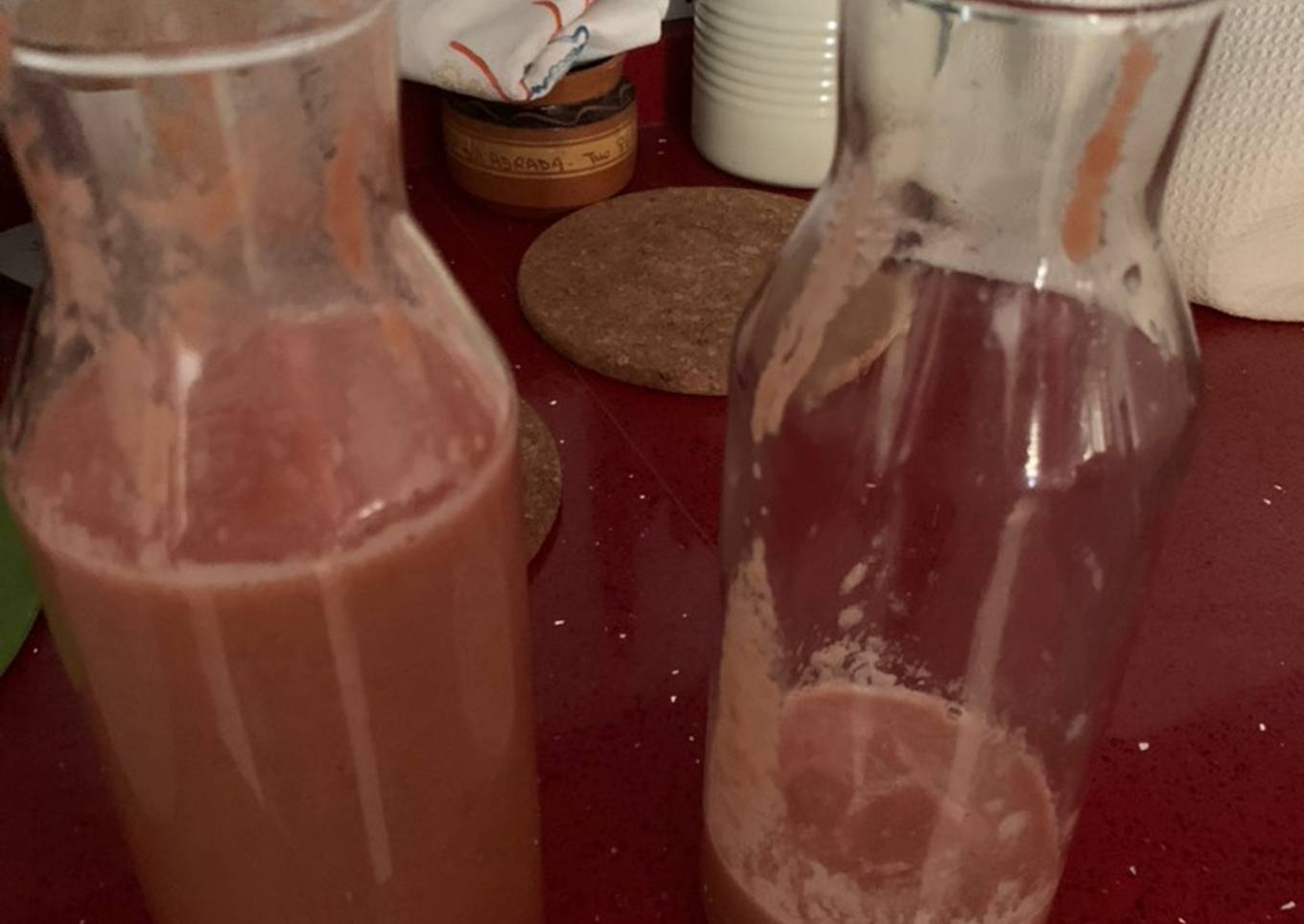 - Se tritura todo con ayuda de una licuadora o procesador de alimentos hasta tener una gazpacho sedoso y cremoso, se pasa por un colador para dejarlo más fino y eliminar las pieles del tomate y pimiento que son muy bastas y con una textura muy desagradable al paladar.