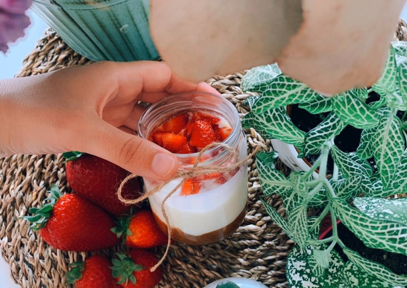 - Mezclamos el yogur con el queso de untar. Ponemos la mezcla encima de las galletas y por último las fresas por encima 🤤