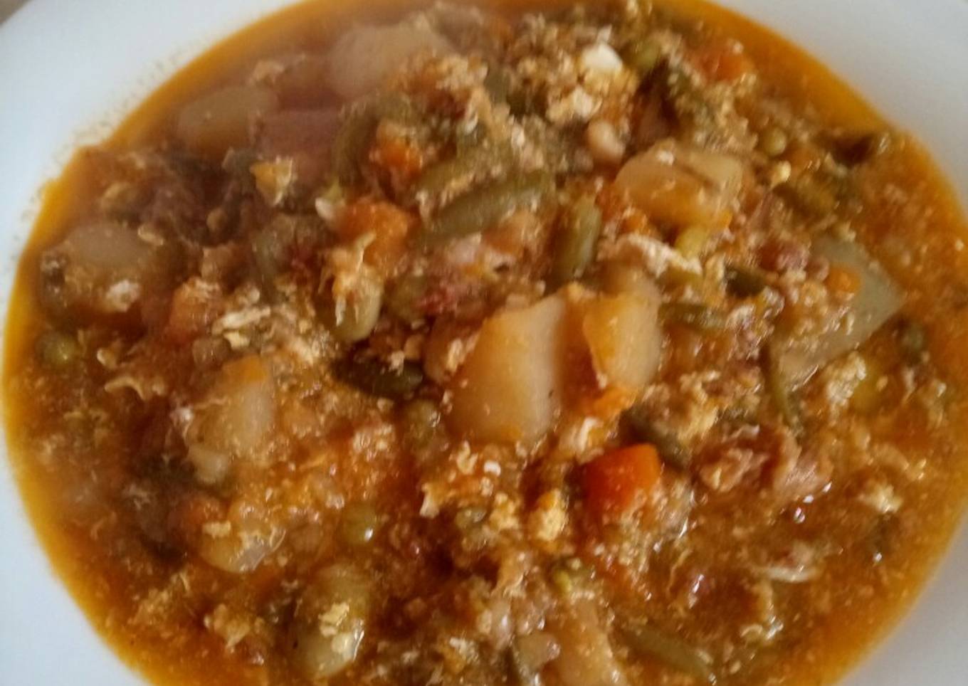 As for the number of servings that can be served to make Menestras con carne huevo y chorizo is 4 o 5 raciones. So make sure this portion is enough to serve for yourself and your beloved family.