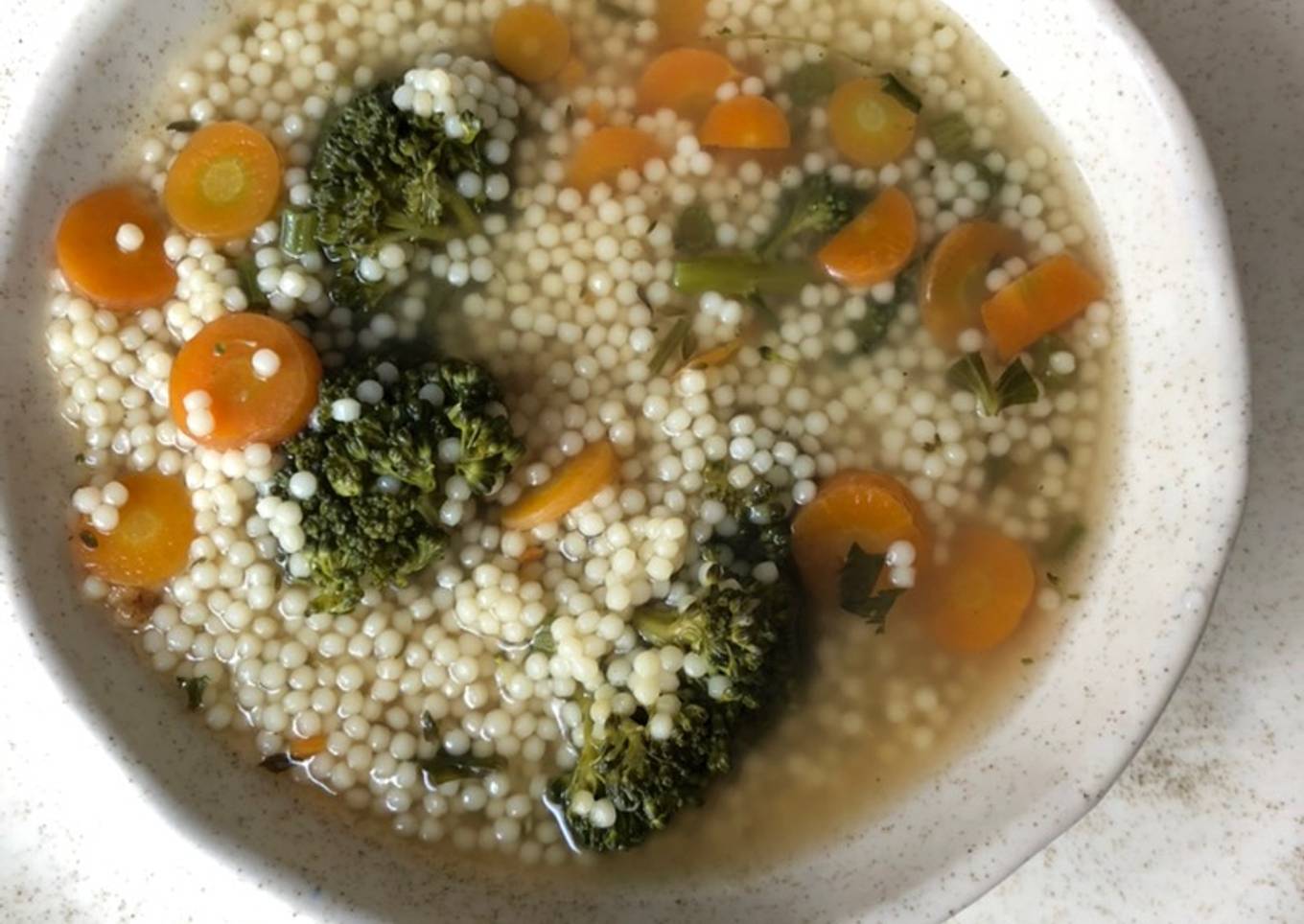 - Hervidos las zanahorias con el caldo vegetal cuando ya estén al punto añadimos el brócoli, tomillo, apio, sal,. Se echa la pasta y se cuece unos 12’.